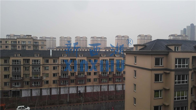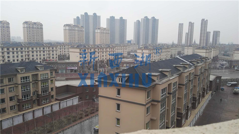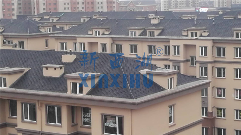 2018年4月15日,公司對大慶欣鳳學(xué)城項(xiàng)目瀝青瓦使用情況進(jìn)行回訪,欣鳳學(xué)城項(xiàng)目17與公司合作,采用新西湖品牌馬賽克六角型慕冷灰顏色,共計(jì)項(xiàng)目用量12000平方。